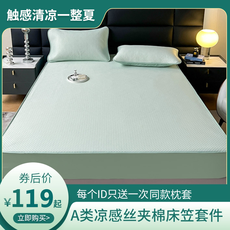 夏天高端2025新款冰絲床笠涼席三件套涼感冰藤席全包床罩床墊套罩