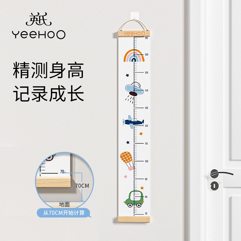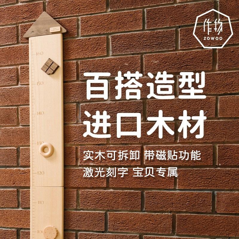 作物zowoo兒童成長磁吸身高尺嬰兒量身高墻貼專業可移動木質標準