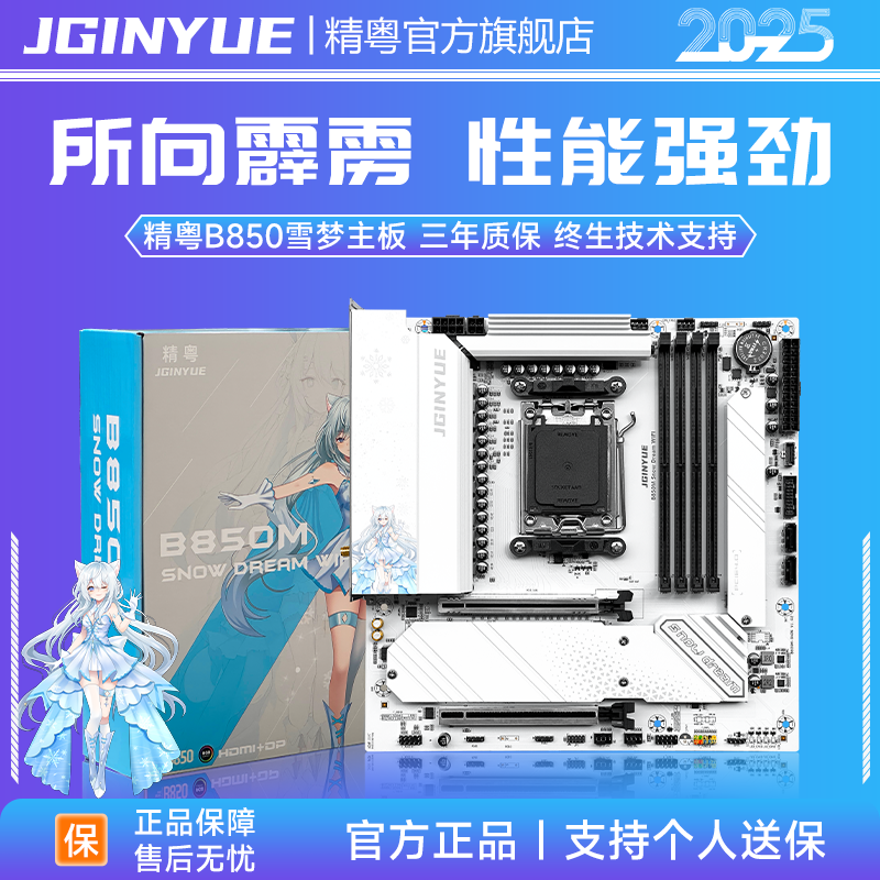 精粵B850雪夢主板ddr5電競游戲PCIe5.0 9950 9800X3D 9600X 9700X