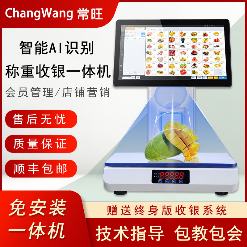 稱重收銀機智能Ai識別觸摸收銀秤超市便利店生鮮水果店雙屏收款機收銀系統管理一體機