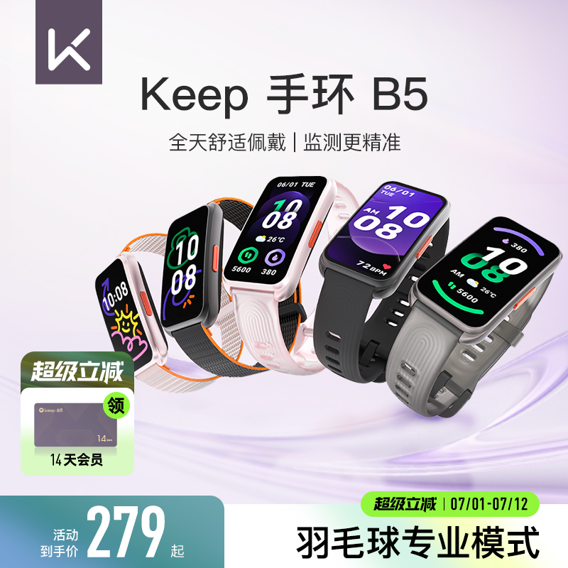 【新品上市】Keep智能手環B5/運動健康羽毛球防水心率睡眠全彩大屏智能運動手環