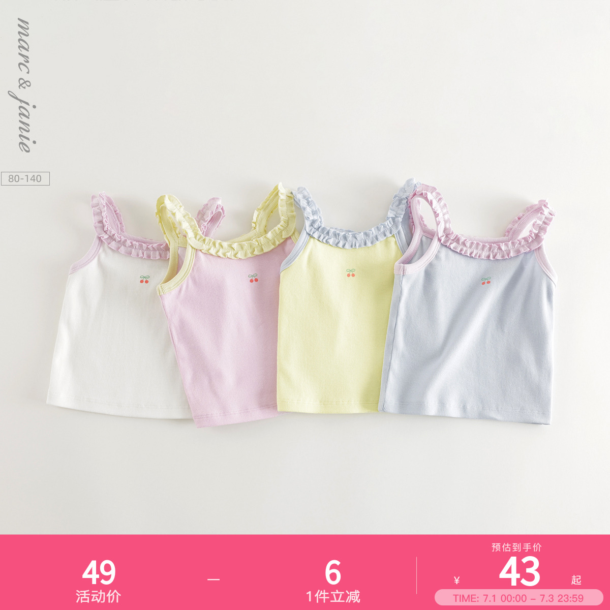 馬克珍妮女童甜美花邊小背心吊帶 寶寶上衣2025年夏裝新款550751