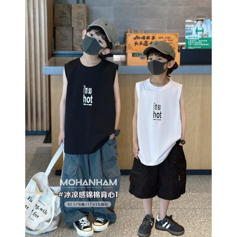 凱文家童裝2025夏季新品男童中大童韓版字母印花T恤兒童無袖背心