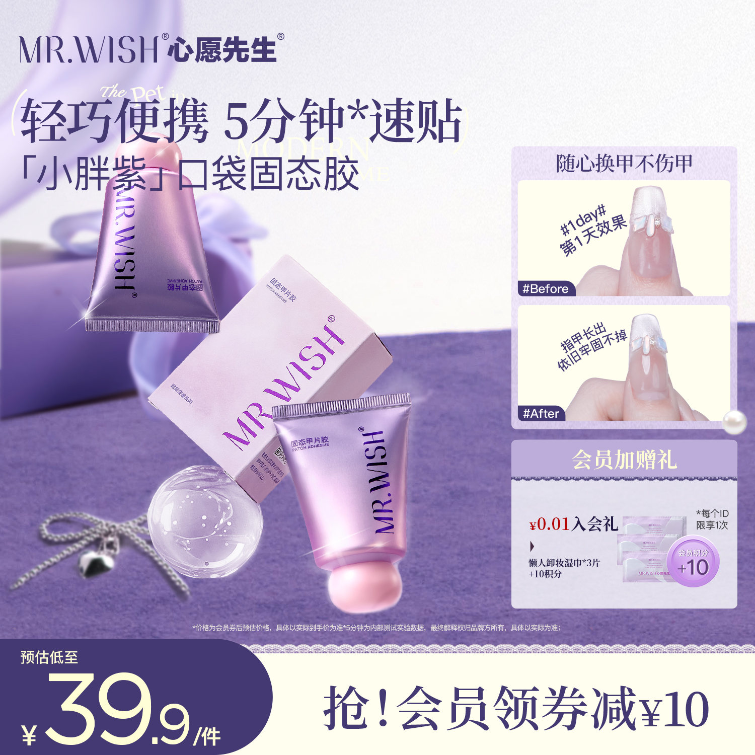 Mr.wish/心愿先生小胖紫固態膠穿戴甲貼片膠粘合劑美甲專用膠水