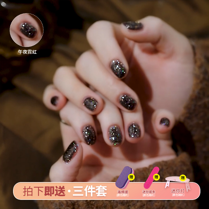 黑色碎鉆膠懶人一步甲油膠2025年新款指甲油膠底膠封層三合一