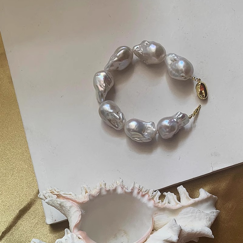 極光炫彩 銀藍天然淡水巴洛克珍珠手鏈手工串珠 大魚尾不規則