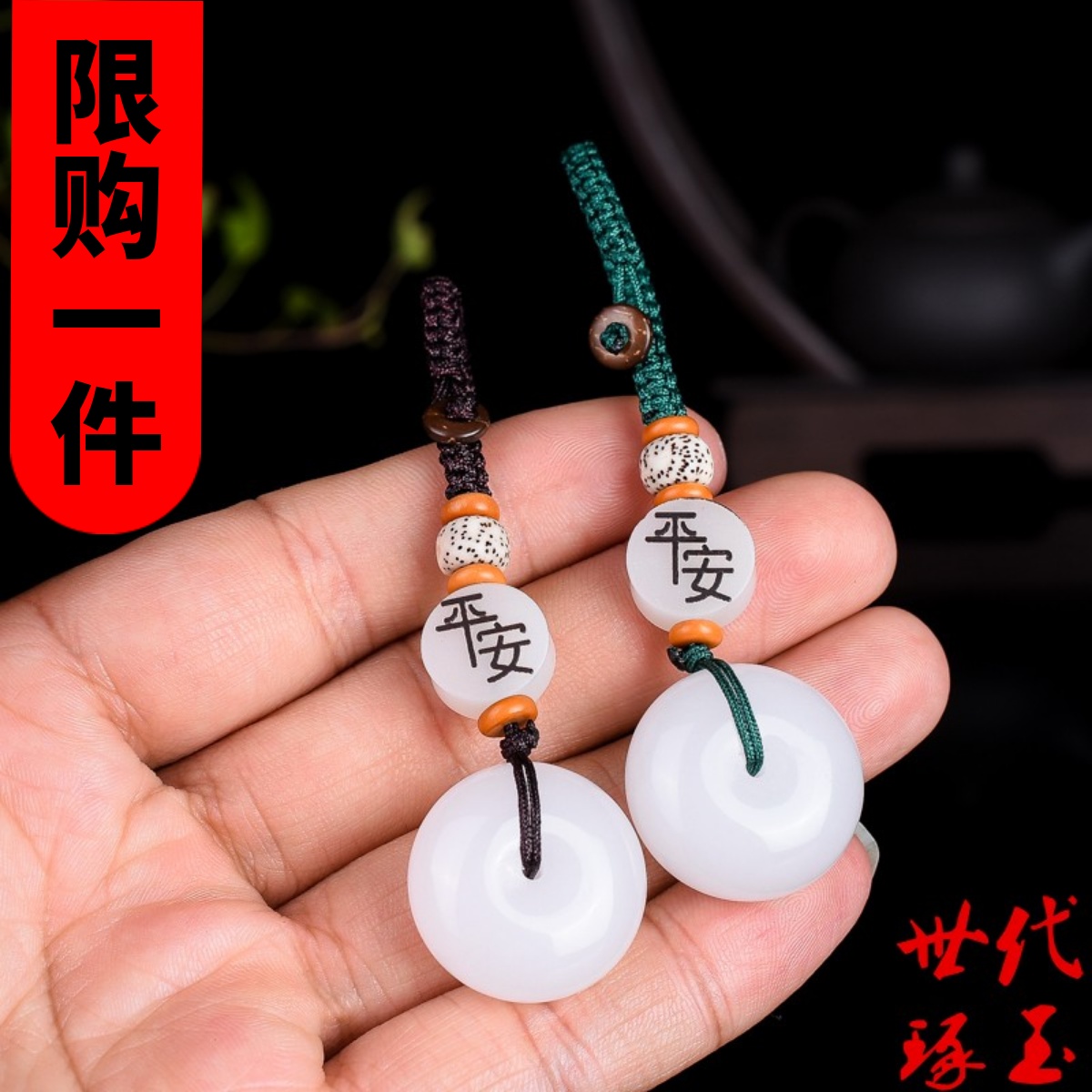 新疆和田白玉平安無事牌汽車鑰匙扣掛件飾男女高檔玉佩保平安禮物