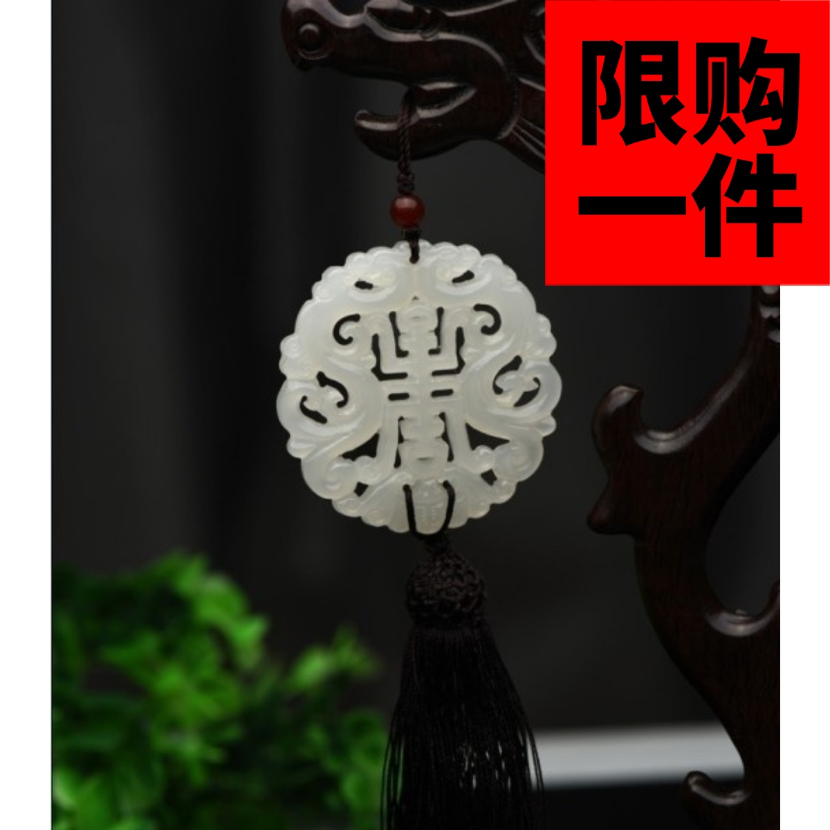 和田玉汽車掛件車內掛件羊脂白玉仿古雙壽后視鏡車用掛飾 玉車掛