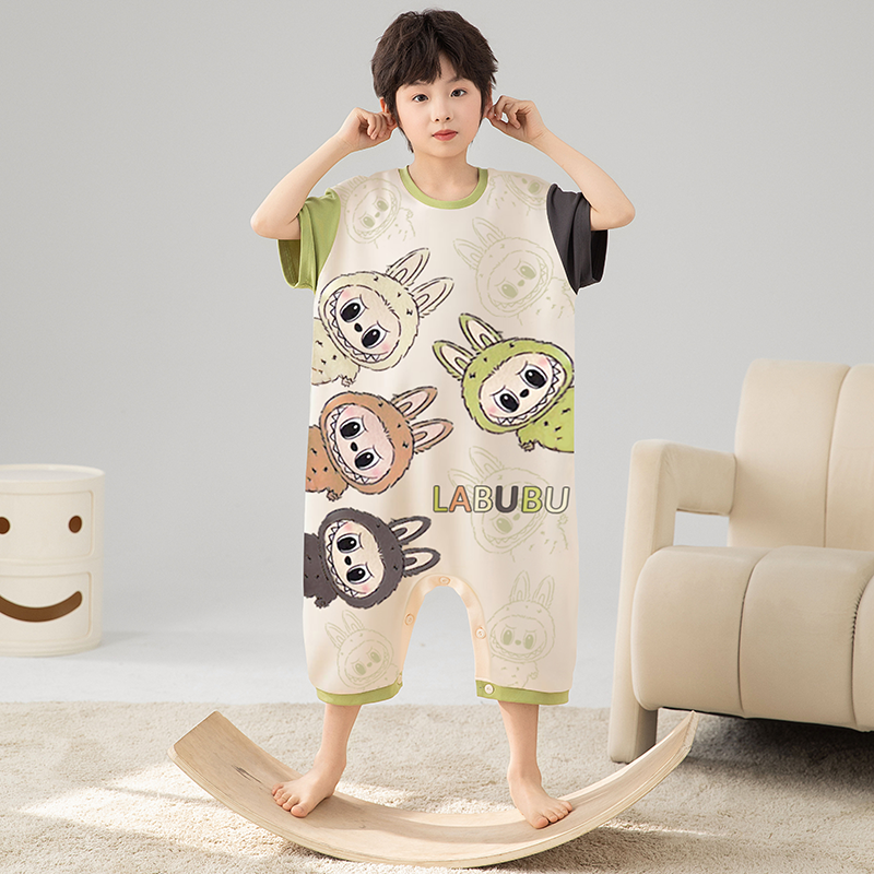 女童睡衣2025新款夏季連體純棉兒童短袖薄款女孩大童labubu家居服