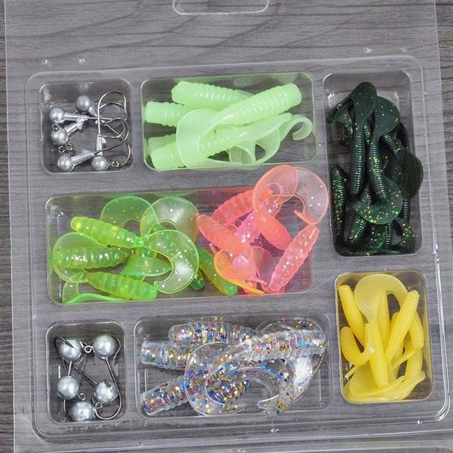速發Soft Fishing Worm Lures Bait Lead Jig Head Hooks Suite S
