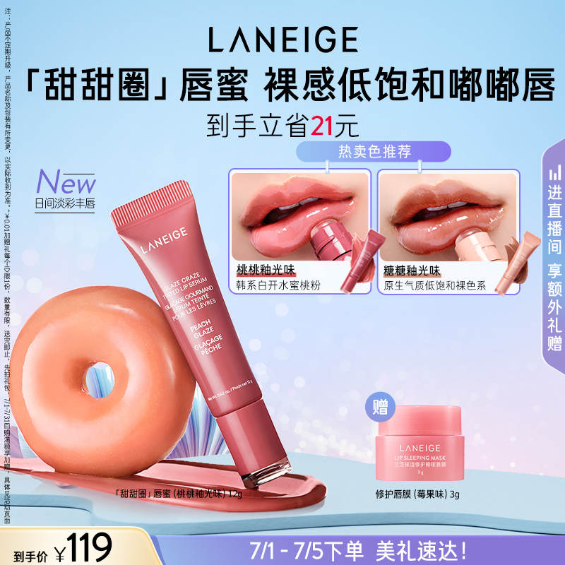 【新品上市】蘭芝甜甜圈晶凍炫色精華唇蜜桃桃釉光味裸感嘟嘟唇