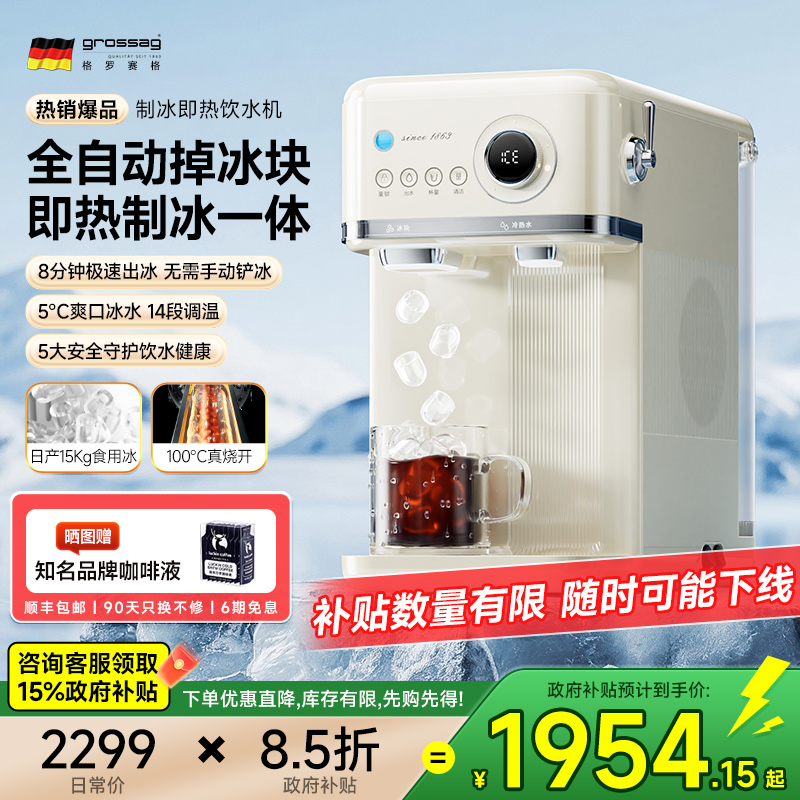 grossag冰塊制冰機家用小型飲水一體機即熱式飲水機全自動直飲機