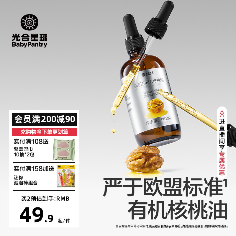 【新品】光合星球DHA有機核桃油食用兒童無添加送嬰兒寶寶輔食譜