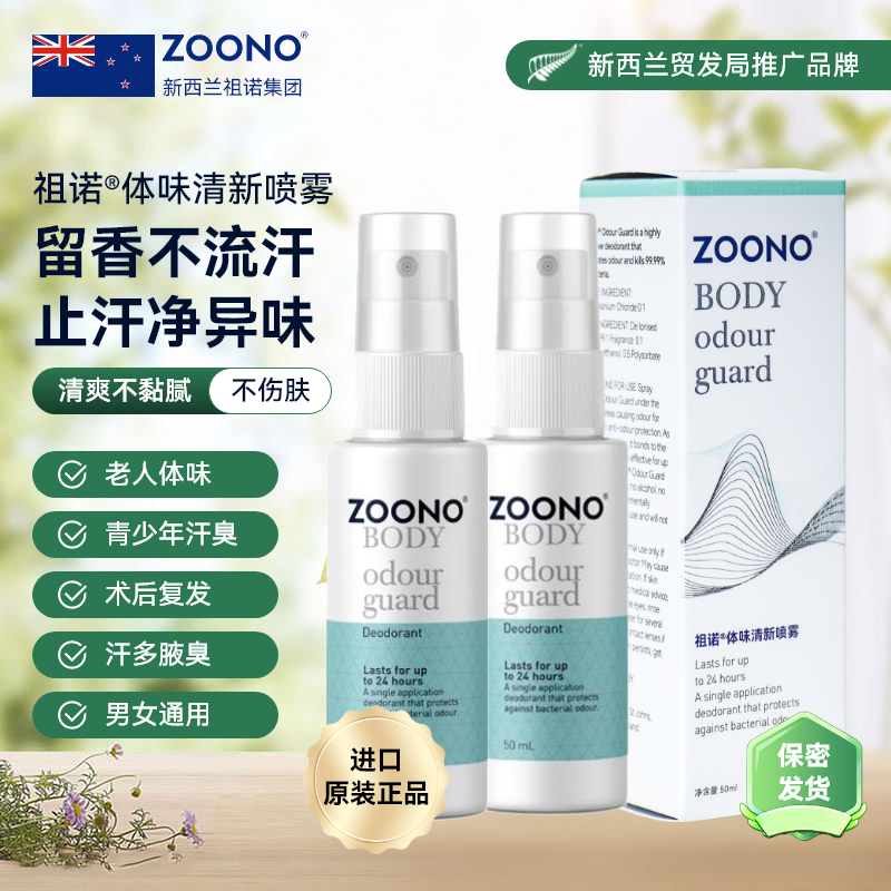 ZOONO祖諾50ML*2瓶體味清新噴霧止汗露腋下除臭劑香體男女去異味