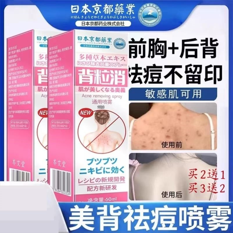 日本京都背粒消背部痘祛噴霧后背部痘印祛黑頭粉刺去除螨蟲前胸口