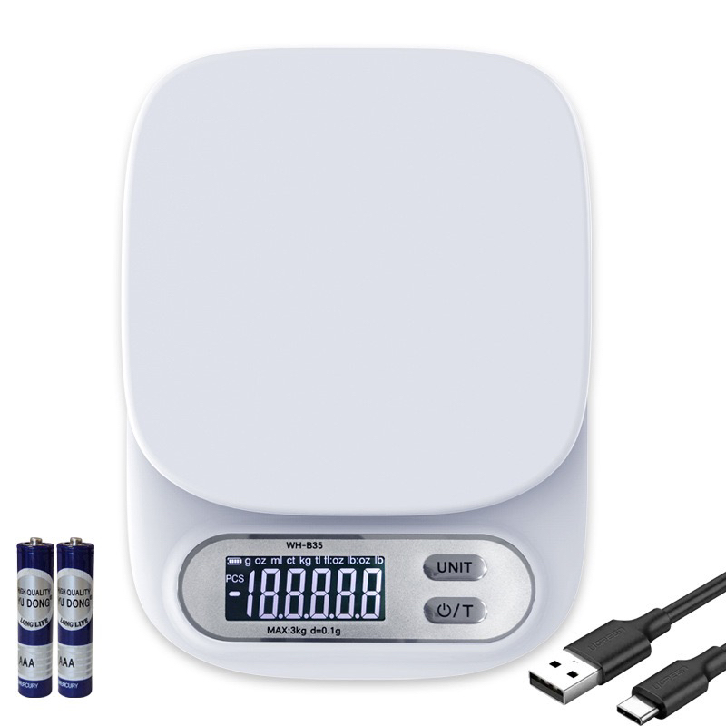 白色廚房秤0.3g-3000g高精度烘焙電子秤 咖啡秤 家用電子秤