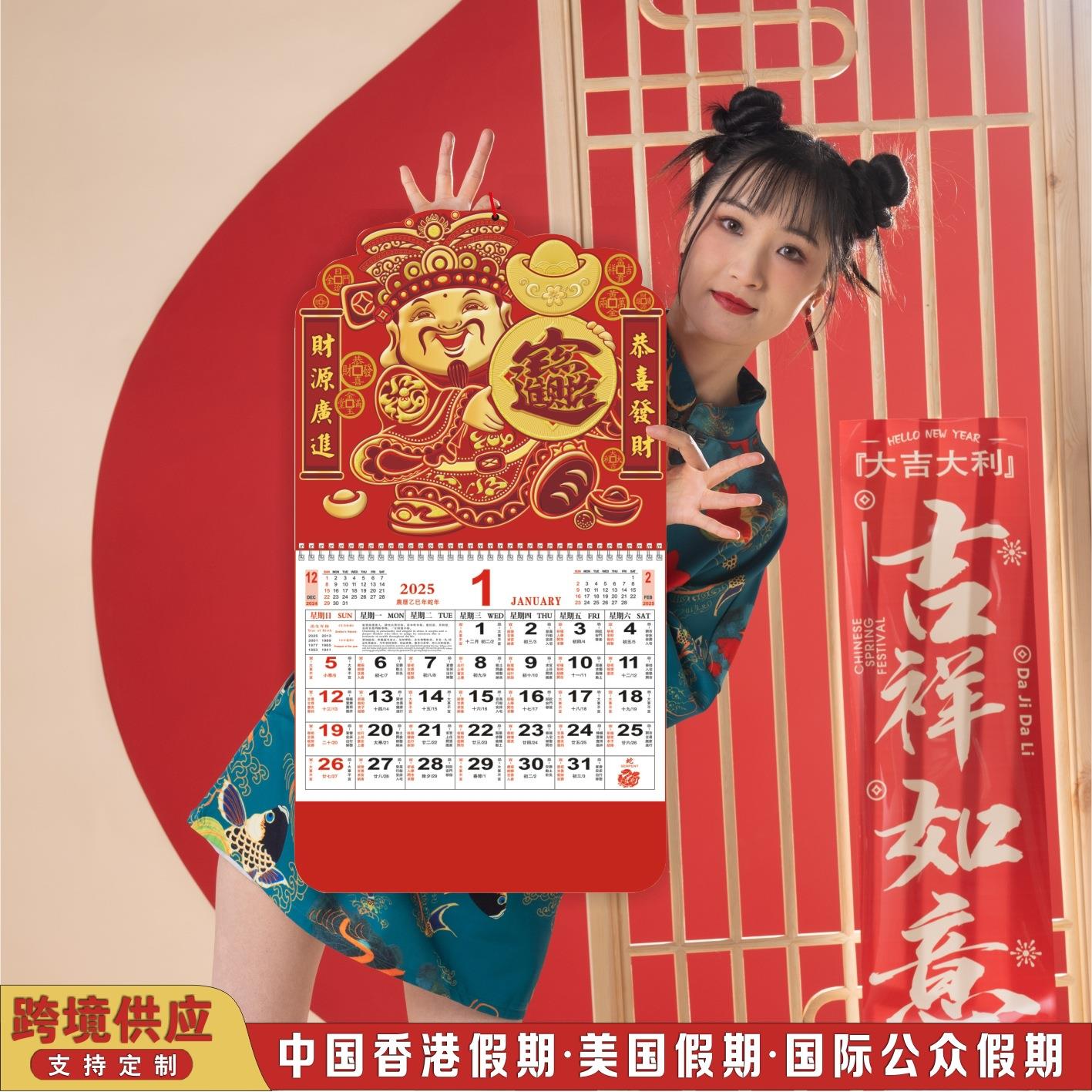 掛歷定制2025蛇年福字大號小號美國香港掛墻日歷日歷國際假期月歷