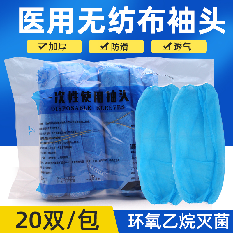 醫用無菌一次性袖套藍色加厚無紡布套袖食品家務20副手術袖頭護袖