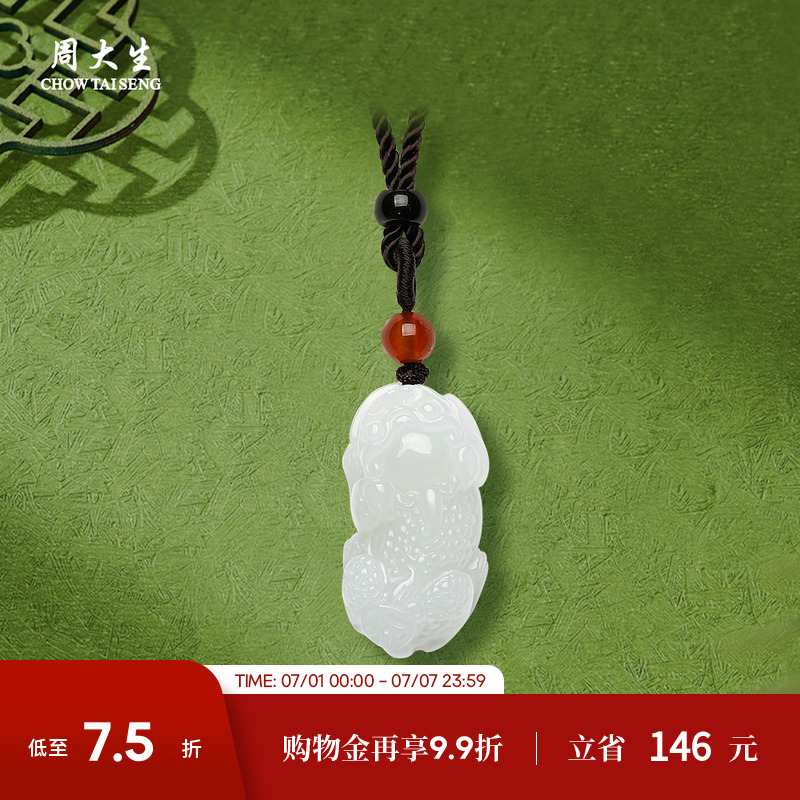 周大生天然和田玉彌勒佛公吊墜玉石如意本命年掛墜女款項鏈禮物