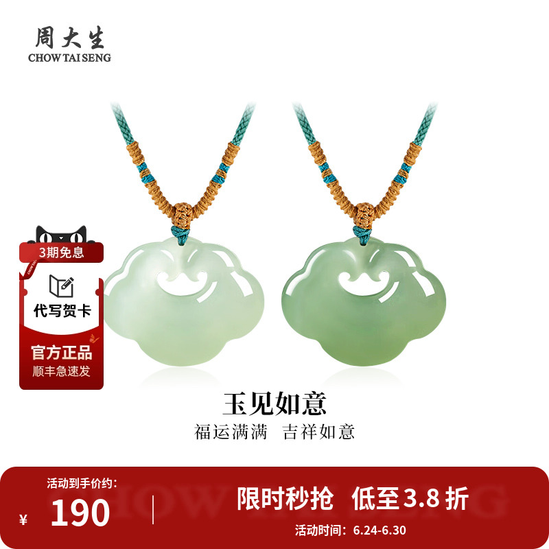 周大生和田玉吊墜玉如意平安鎖玉石掛墜男女情侶款玉佩節生日禮物