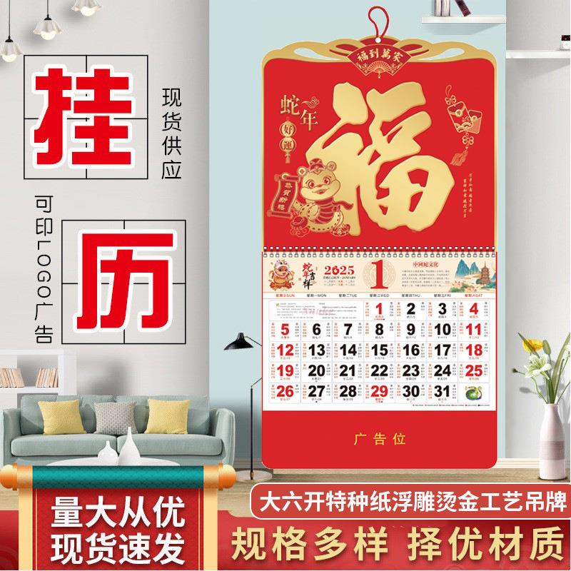 2025蛇年創意廣告掛歷定制大號福字吊牌企業宣傳家用掛墻中國紅月歷定做磨砂浮雕工藝加厚手撕日歷承接專版