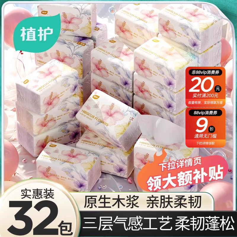 植護12包抽紙整箱實惠裝衛生紙家用面巾紙批發餐巾紙大包擦手