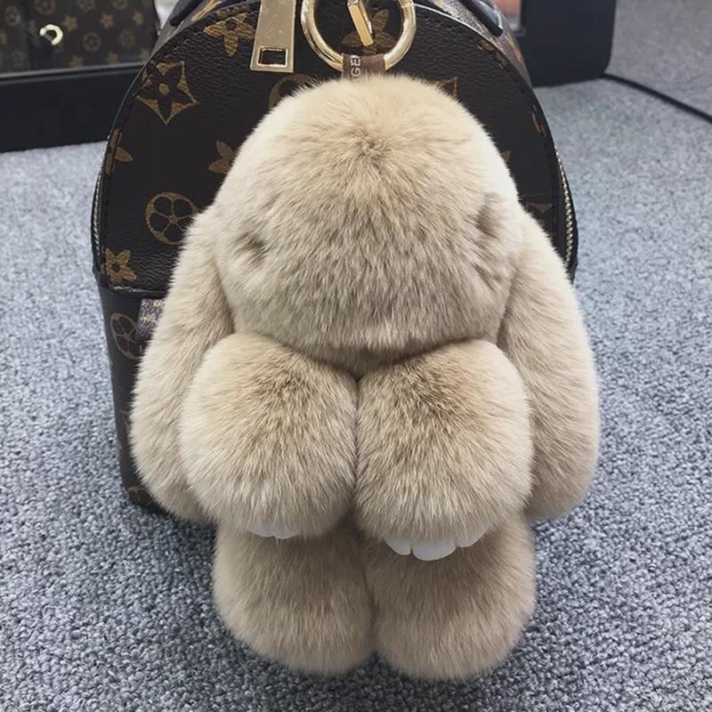 真獺兔毛公仔小兔子汽車鑰匙扣掛件垂耳兔包包毛絨裝死掛飾兔動物