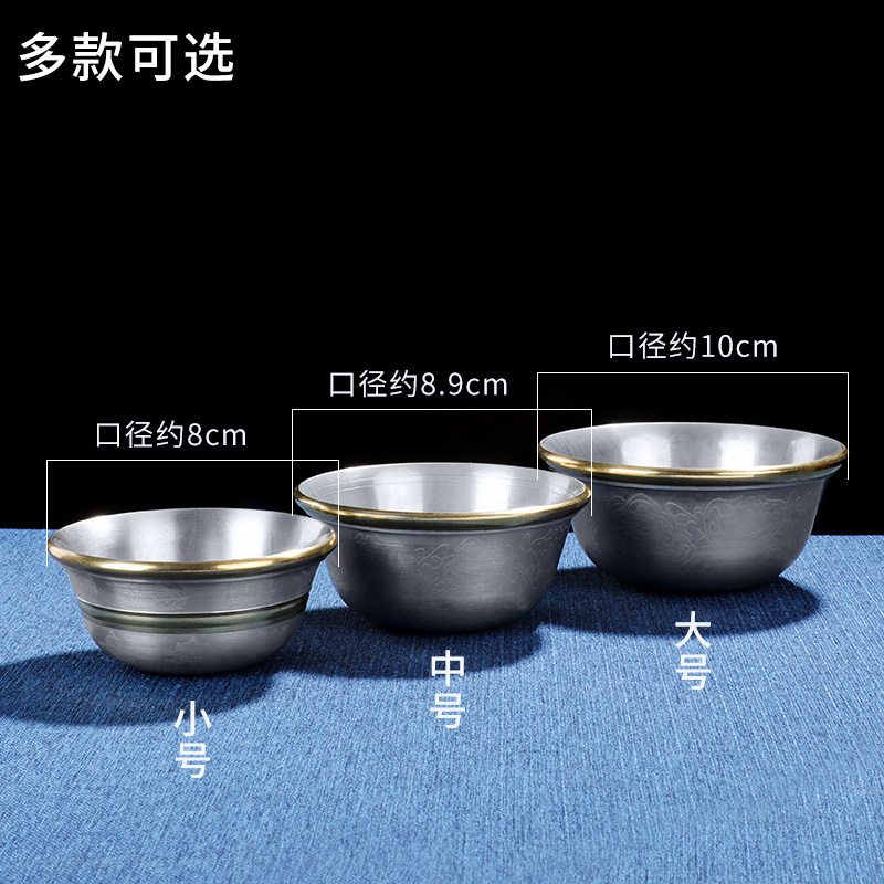歐斯特合金仿古圣水杯 家用藏式銅雕花八吉祥供水碗供水杯9.5cm