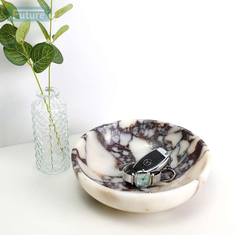 意式輕奢天然卡紫大理石水果零食置物碗首飾收納盆裝飾品創意擺件