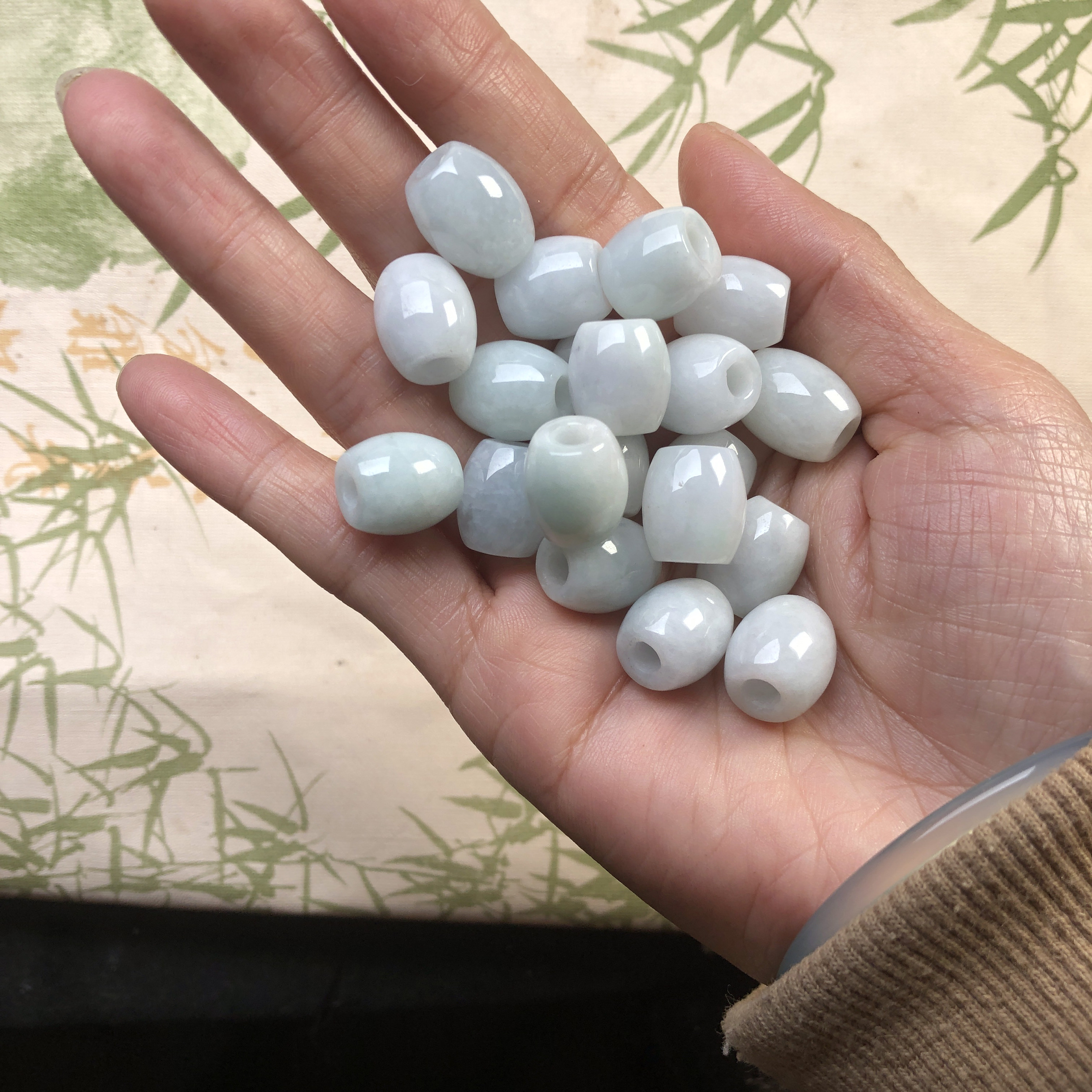 隆慈緣翡翠A貨緬甸玉冰透路路通大孔翠綠米珠十六顆路路通散珠