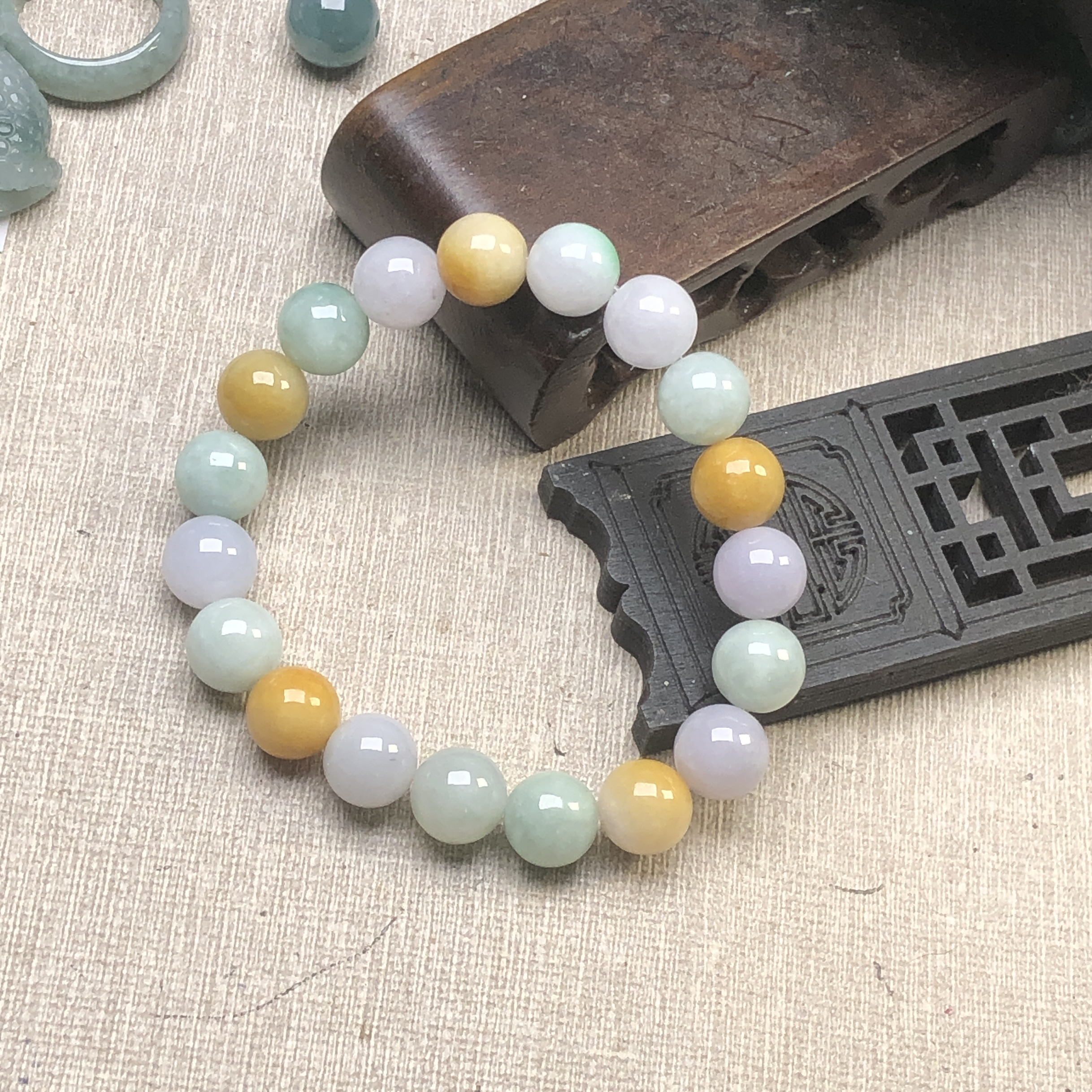 隆慈緣原礦翡翠源頭直發A貨翡翠冰糯種5mm多寶手串三彩手串