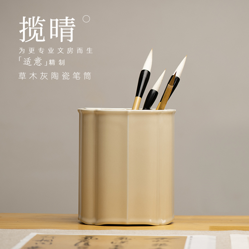適意攬晴筆筒大號陶瓷海棠筆筒文房四寶書法繪畫筆收納高檔禮盒