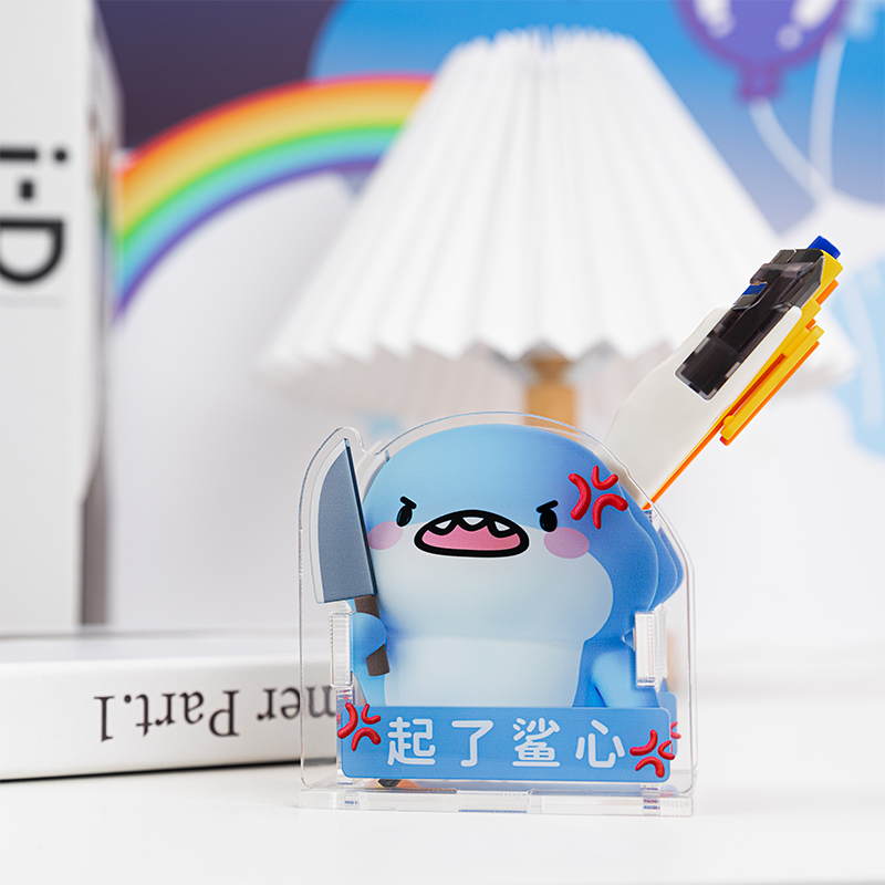 肥肥鯊你沒事吧亞克力筆t筒辦公室桌面學生文具收納創意可愛擺件