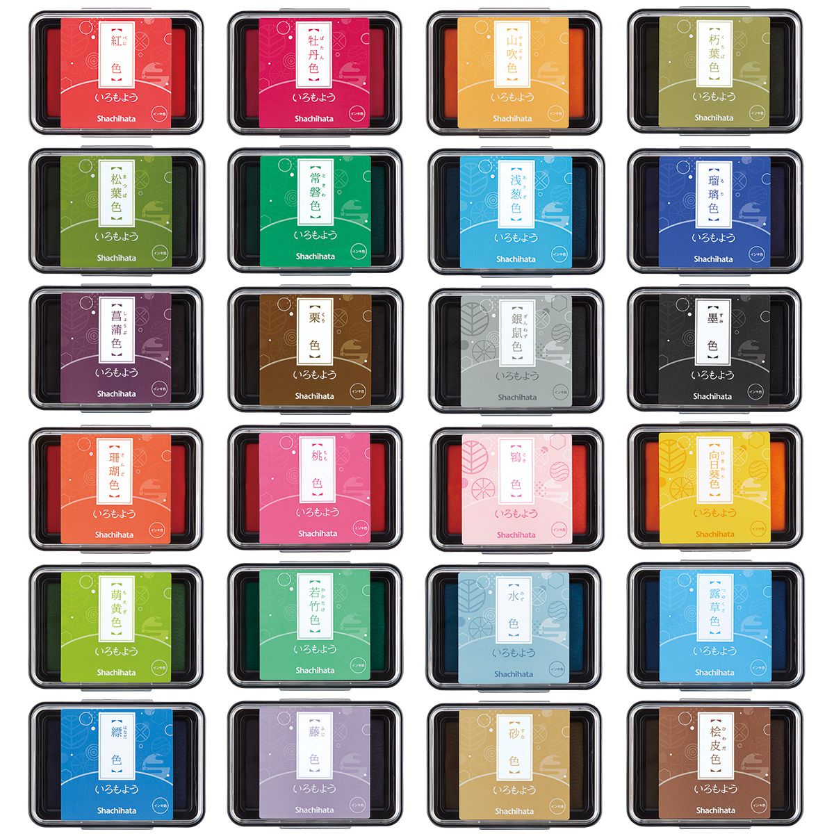 日本旗牌印臺Shachihata油性顏料色模樣和風手帳橡皮章印泥全29色