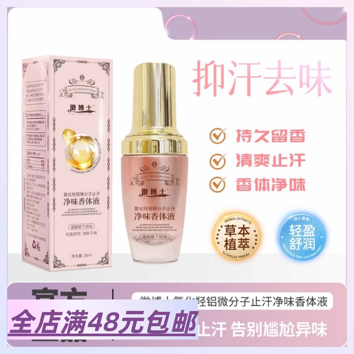 2瓶包 郵 氯化羥鋁微分子止汗凈味香體液