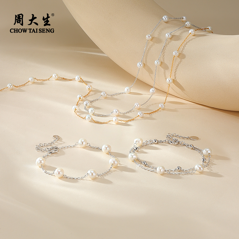 【ZB】周大生滿天星珍珠項鏈繁星珍珠手鏈女
