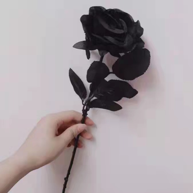 新品復古高貴黑色玫瑰仿真花拍照道具手拿花攝影裝飾拍攝擺件飾品
