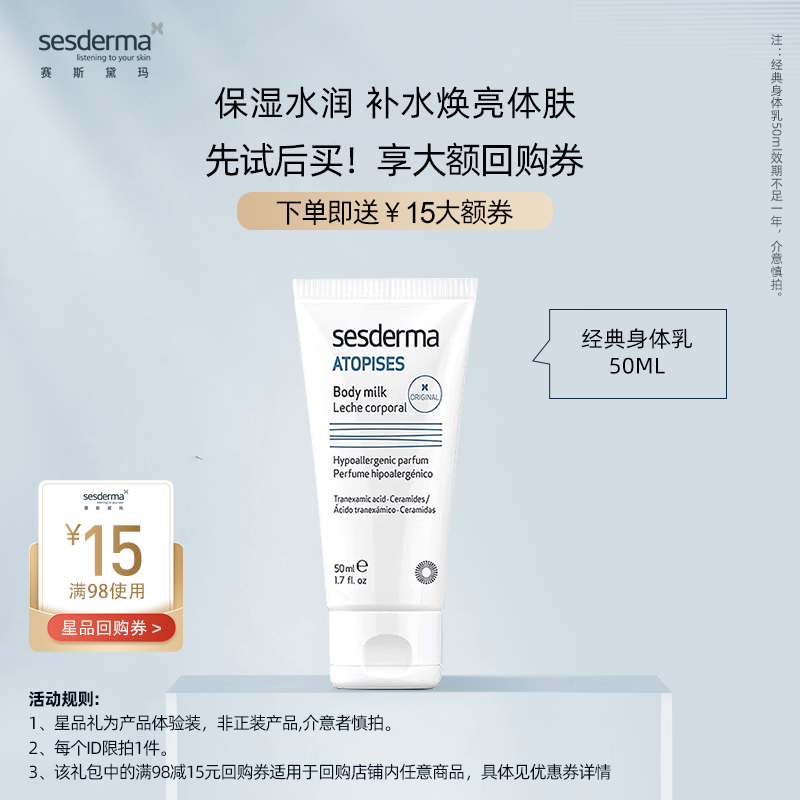 【天貓U先】西班牙sesderma經典補水保濕身體乳50ml煙酰胺春夏