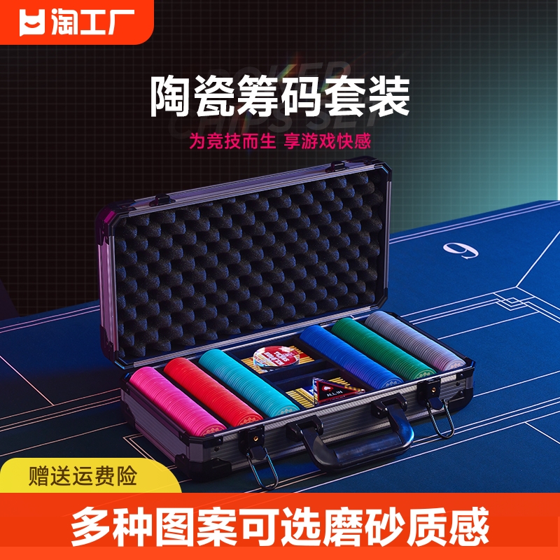 德州撲克陶瓷籌碼全套高端棋牌室專用套裝德撲無面值有面值poker