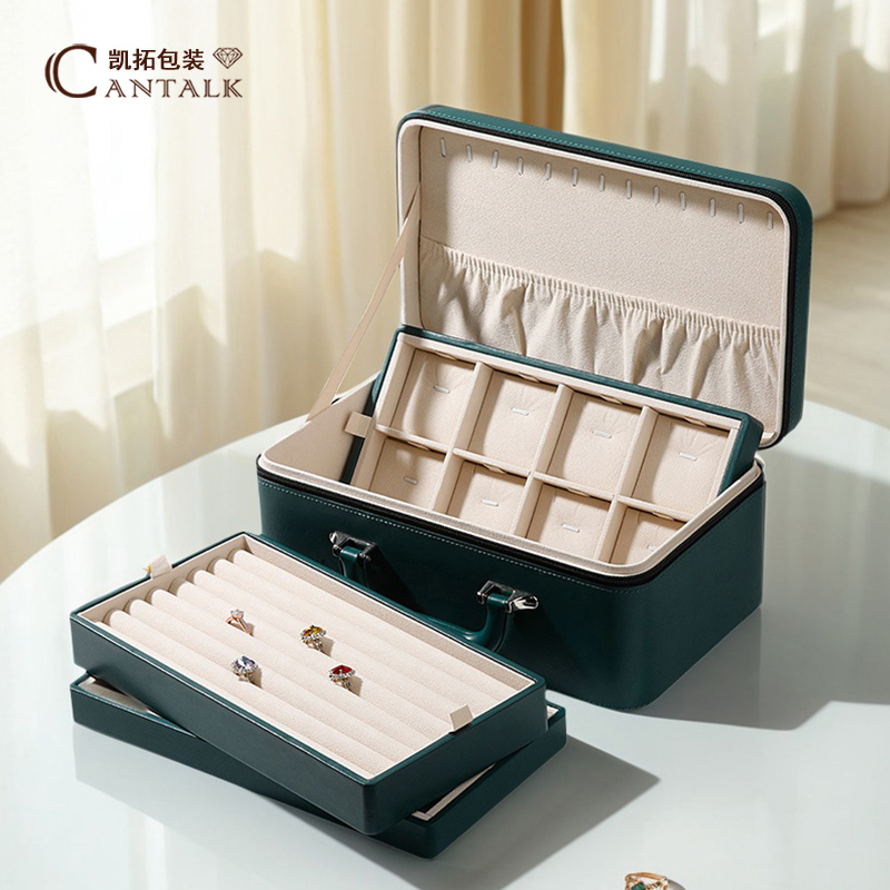 凱拓雙開拉鏈珠寶收納箱大容量戒指項鏈耳釘首飾箱定制珠寶收納盒