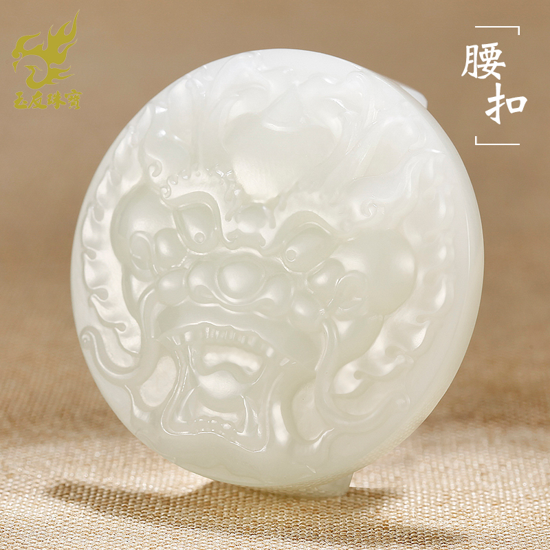 玉友和田玉腰佩生肖龍白玉男款玉石腰扣玉器龍頭皮帶扣神龍見首
