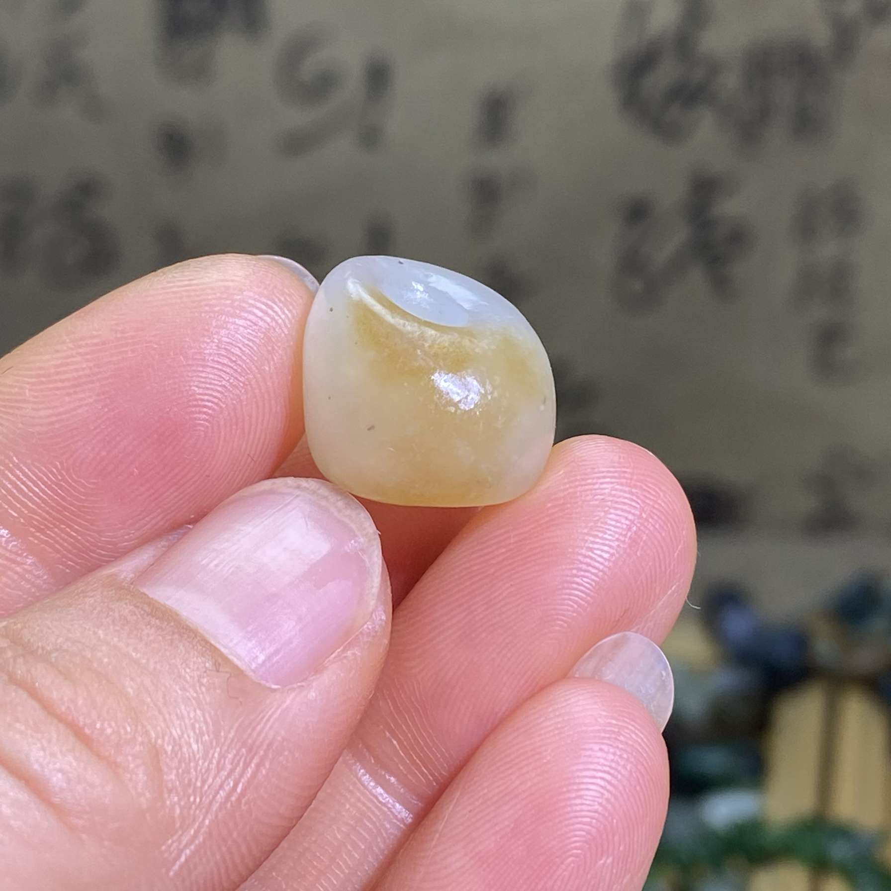 和田玉青黃口隨型扣子小配飾老光工藝復古風藏式多寶手編繩配珠