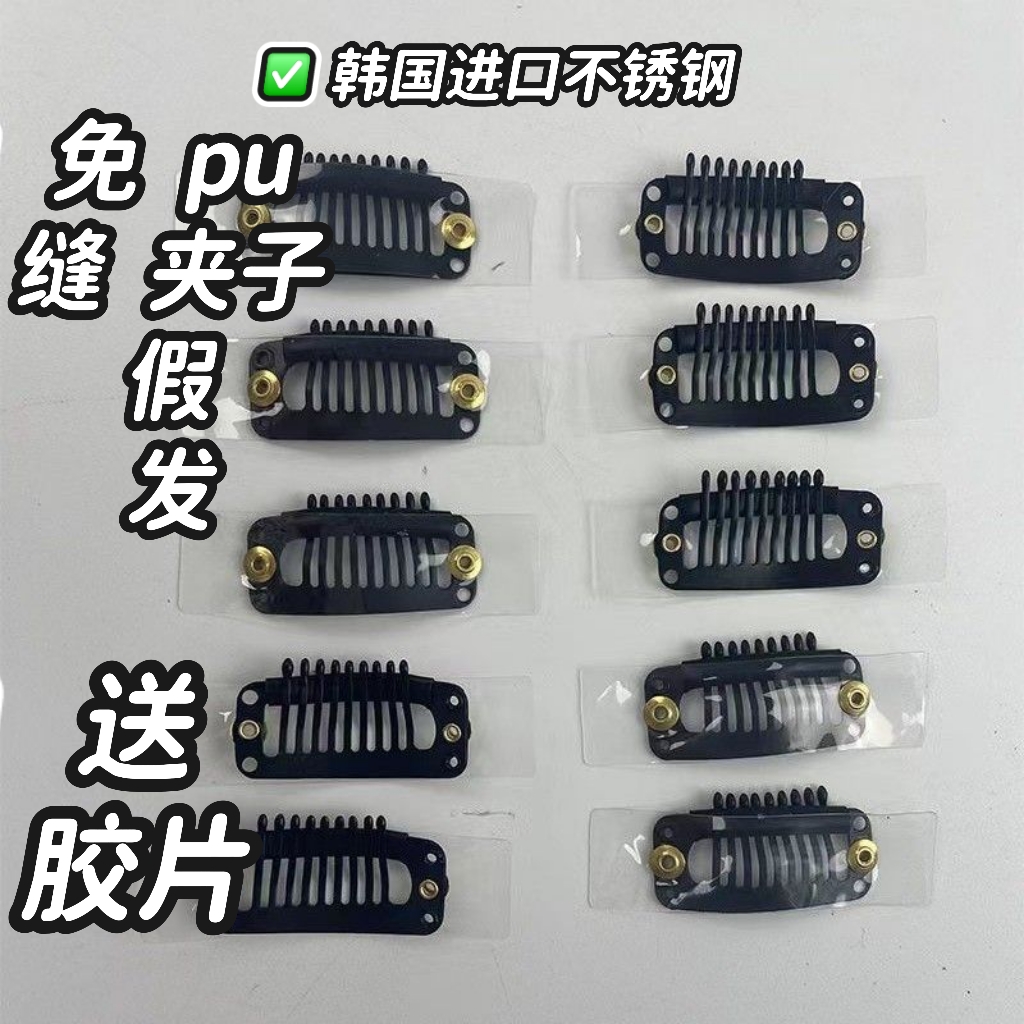 4個裝假發粘貼PU卡子不銹鋼9齒水滴夾黏貼固定假發發塊發片免縫款