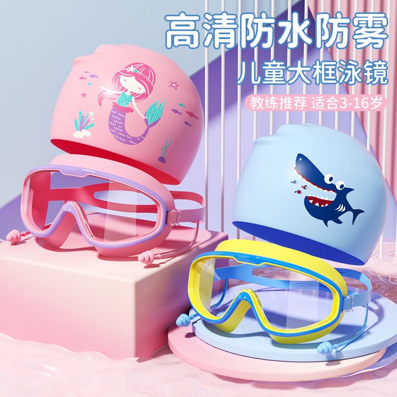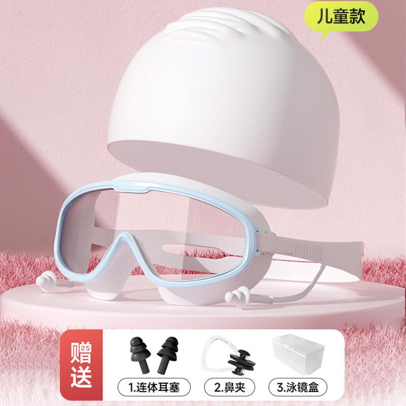 兒童泳鏡大框高清防水防霧男童游泳眼鏡女孩專業潛水泳鏡泳帽套裝