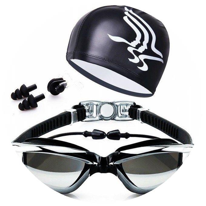 速發泳鏡高清平光防水防霧眼鏡泳帽游泳套裝可調節大框電鍍送耳塞