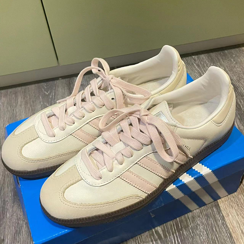 Samba德訓鞋奶油粉T頭少女德訓鞋新款真皮圓頭低幫通勤百搭韓版鞋