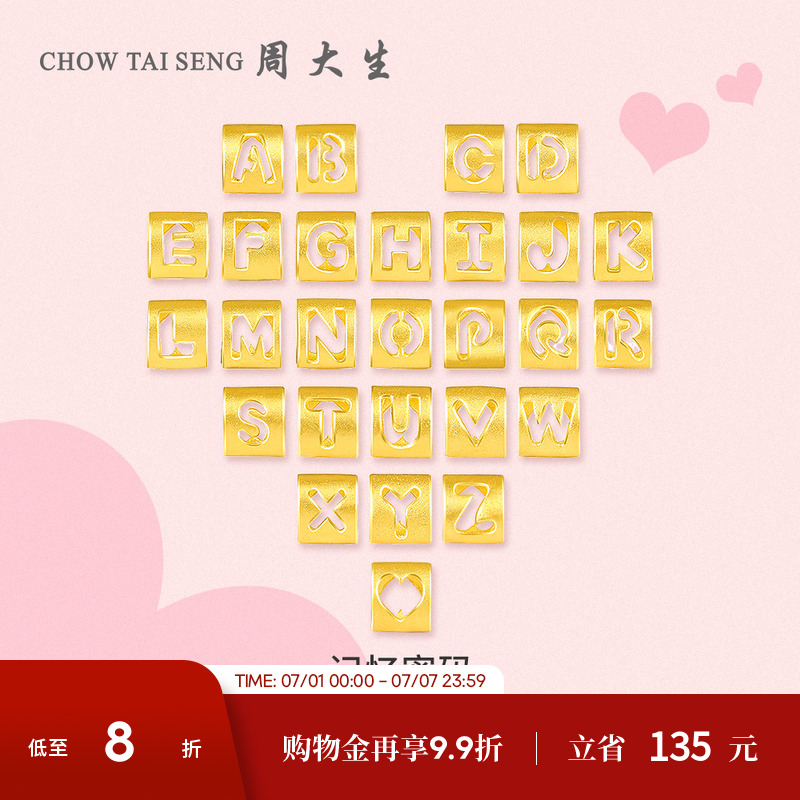 周大生黃金字母轉運珠足金手鏈手繩項鏈吊墜情侶生日禮物送男女友