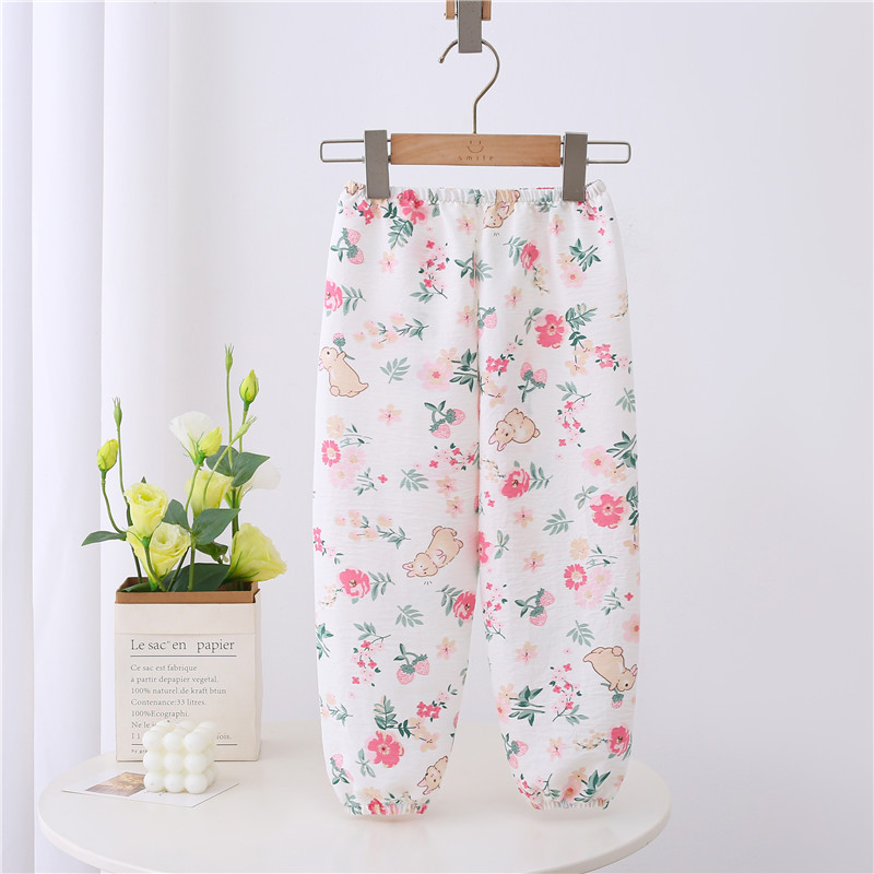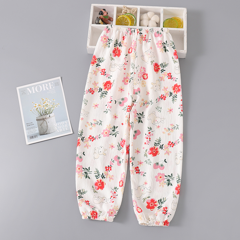 兒童綿綢睡褲空調褲云朵棉燈籠褲薄款小童男女童休閑褲卡通風夏季