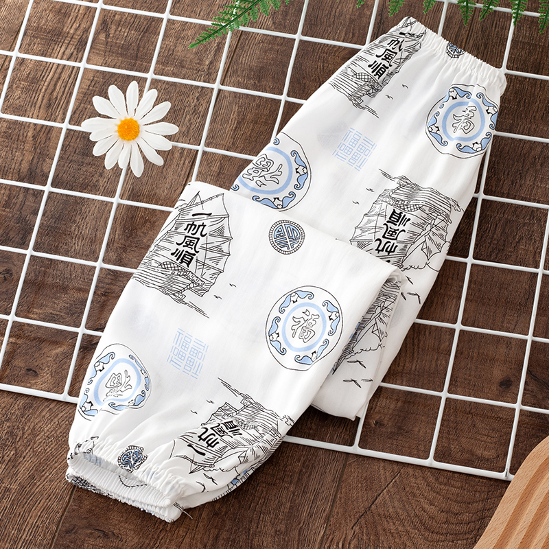 夏季兒童睡褲純棉綢超薄款男童家居褲防蚊褲女童寶寶空調褲燈籠褲