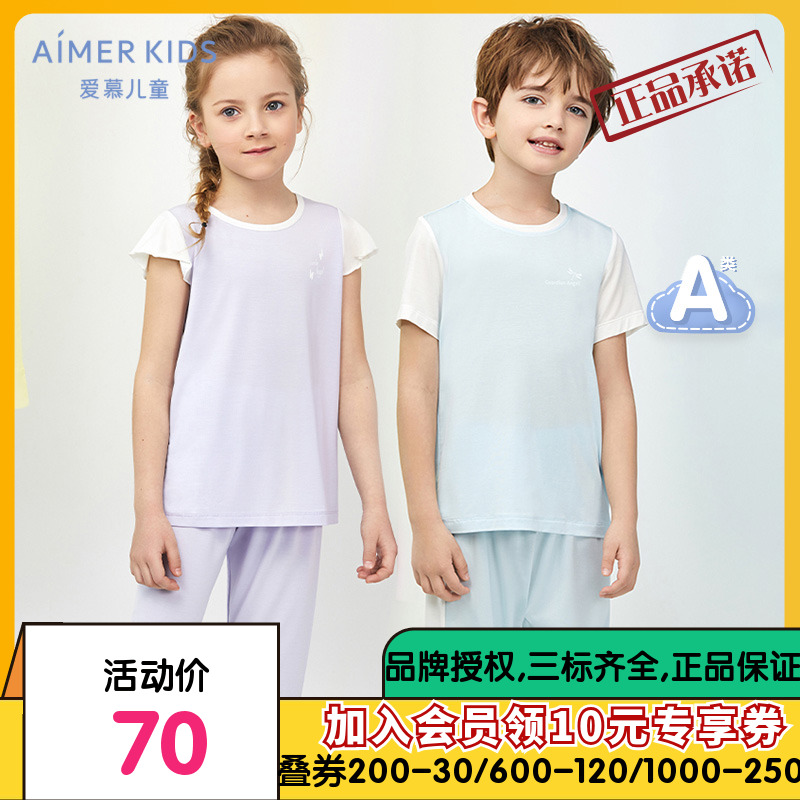 【A類防蚊家居】21新品愛慕兒童夏男女童孩套頭短袖睡衣/七分睡褲